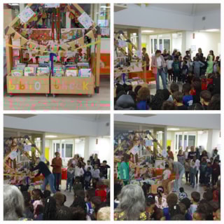 De bibliotheek ouder heeft aangegeven hoe de leerlingen boeken lenen, wat ze graag lezen en een rondleiding gegeven in de bibliotheek in de gele en rode hal.