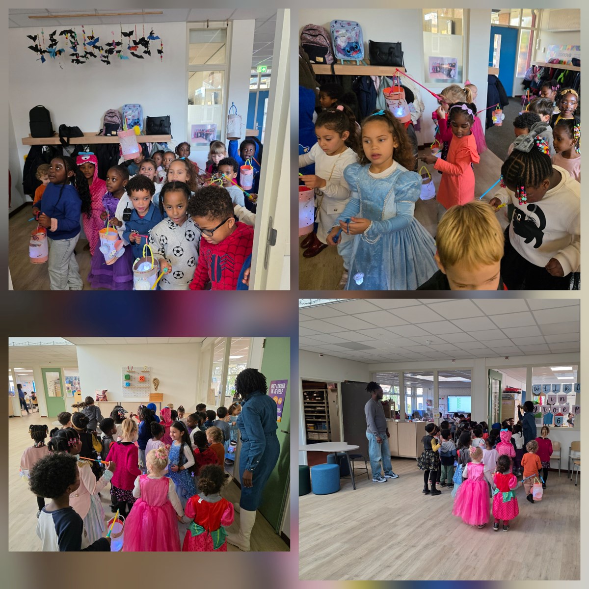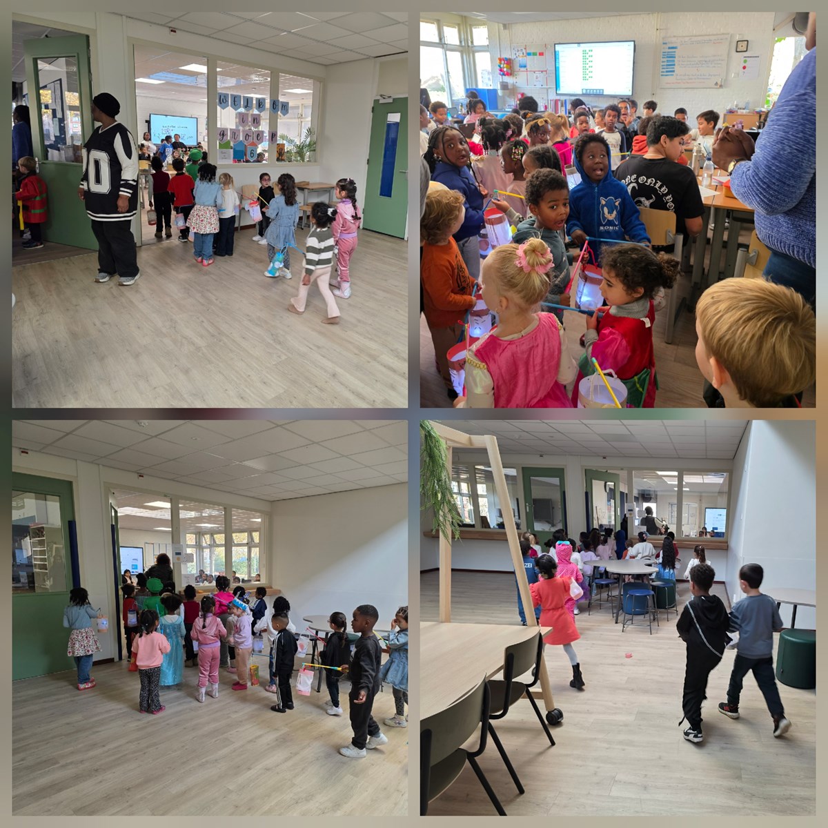 “Halloween en Sint Maarten”, met hun zelfgemaakte lampion voor Sint Maarten en verkleedkleren van Halloween een rondje door de school gelopen.