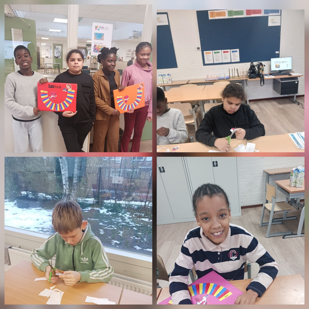 De les van vandaag ging over de uitdaging van de leerkuil. De leertaal was; ik werk samen. De leerlingen hebben onderdelen gemaakt voor hun bordspel leerkuil. Dit spel presenteren ze volgende week vrijdag in de groep en gaan het spel ook met de overige klasgenoten spelen. Samen zijn wij trots op wat ze kunnen. Juf Eudia