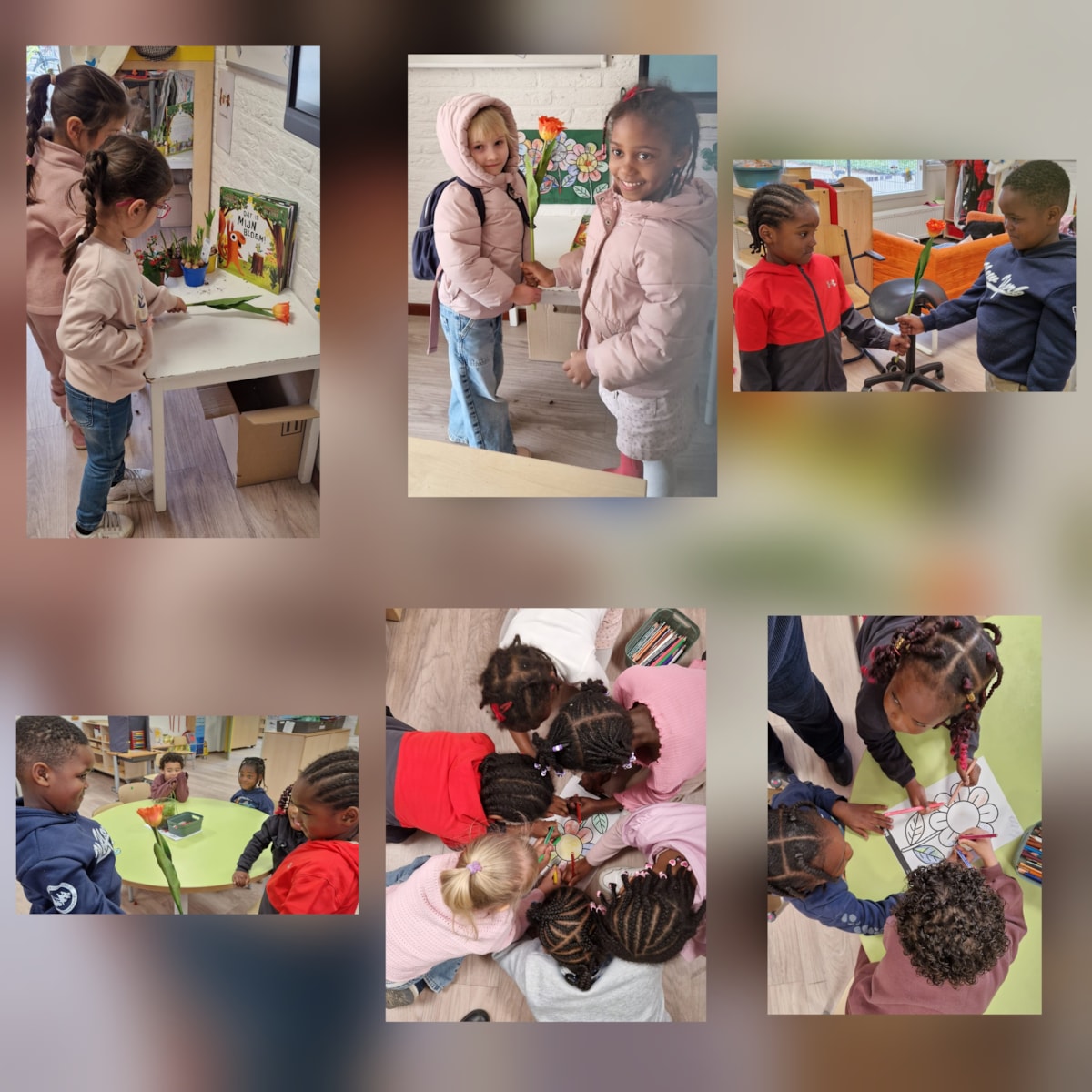 Vanmorgen is er gesproken over vriendschap. Samen met je groepje een bloem inkleuren.